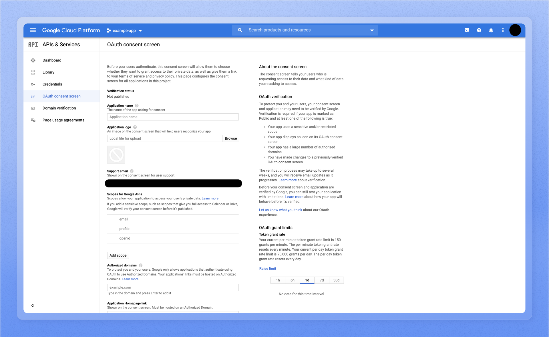 - Navigate to the OAuth consent screen under APIs & Services. Choose how you want to configure and register the Plane app, including your target users, and click Create.